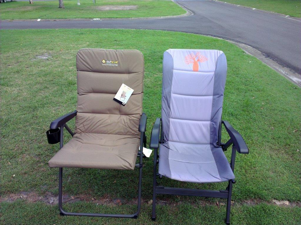 We hit the road nearly two years ago now, with our two existing camp chairs, both Spinnifex non padded high backed adjustable chairs. Fine for occasional camping and sitting around the camp fire with your feet up on a milk crate, but after two years of use, working full time on the road we were developing “numb bum” syndrome.